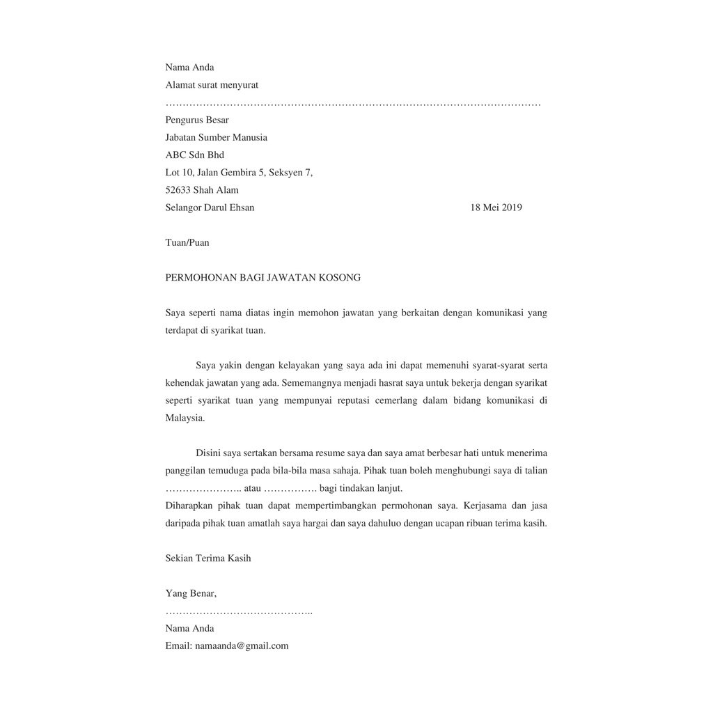 Contoh surat permohonan kerja kosong assignment insaniah.